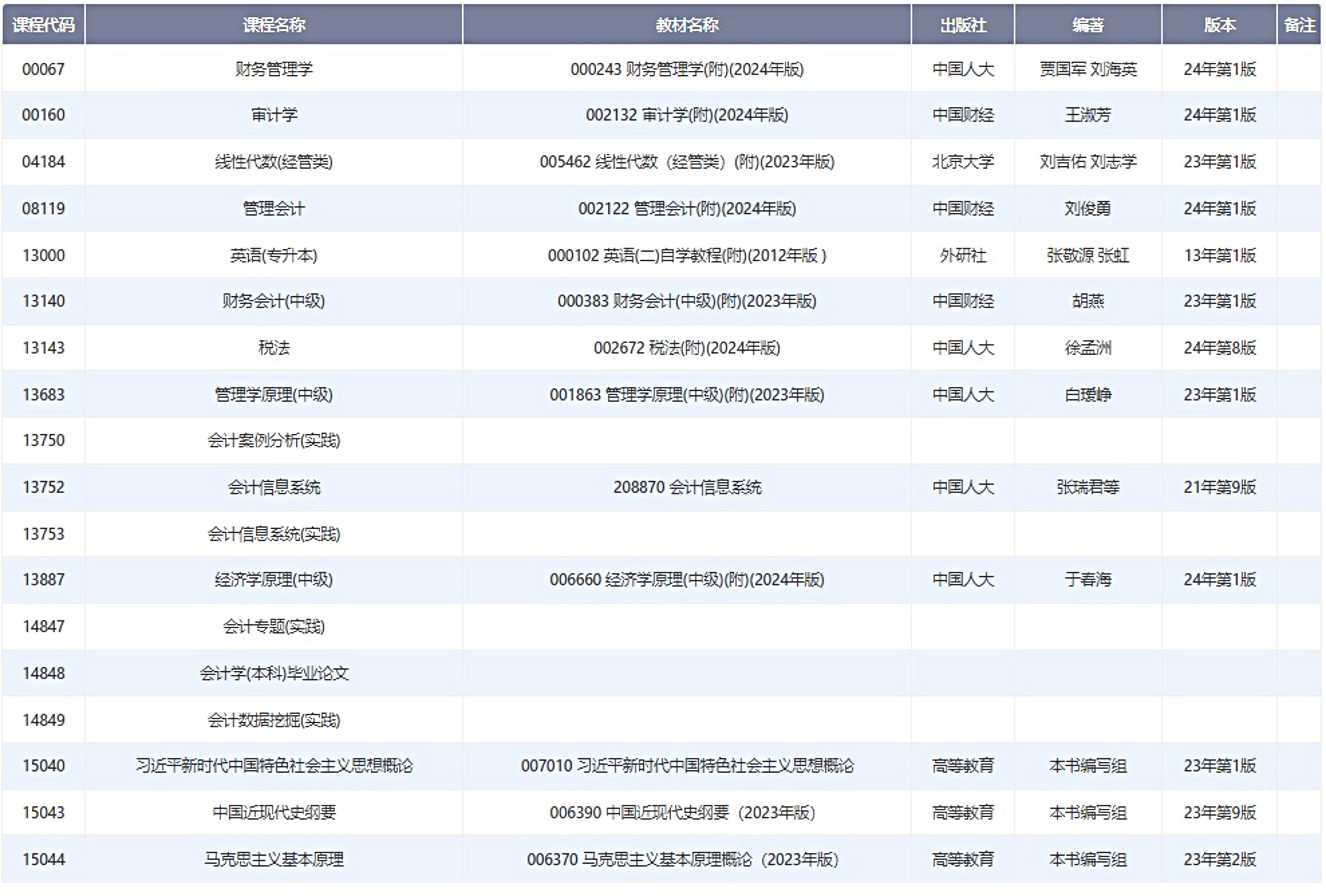 根据浙江自学考试信息网,专业:120203K 会计学用书目录如下:
